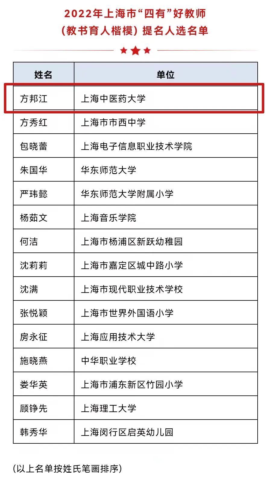 万象城官网方邦江教授入围2022年上海市“四有”好教师(教书育人楷模)提名人选名单