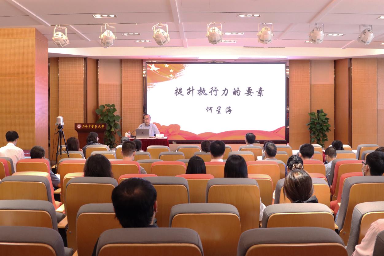 为认真学习贯彻中国共产党awc77万象城官网第八届委员会第十次全体(扩大)会议暨秋季学期工作会议精神,提升执行力狠抓工作落实。9月26日上午,机关党委在行政中心301会议室(主会场)、大学生创新创业实践园(分会场)举行专题报告会。原校党委副书记、副校长何星海就“提升执行力的要素”开展专题讲座。校党委副书记、纪委书记许铁峰,机关党委委员、各级党组织书记、部分党员参加学习会。学习会由机关党委副书记金霞主持。