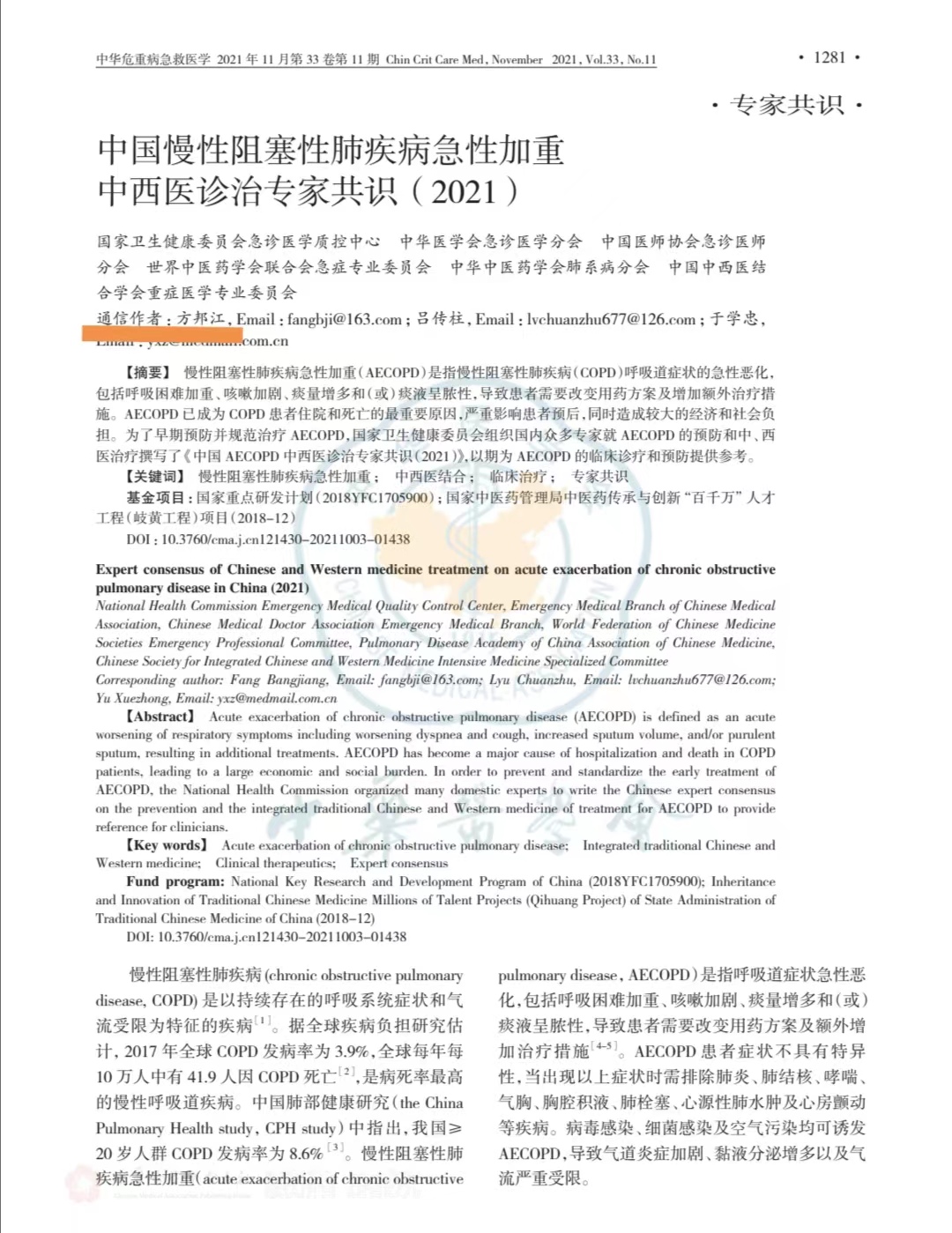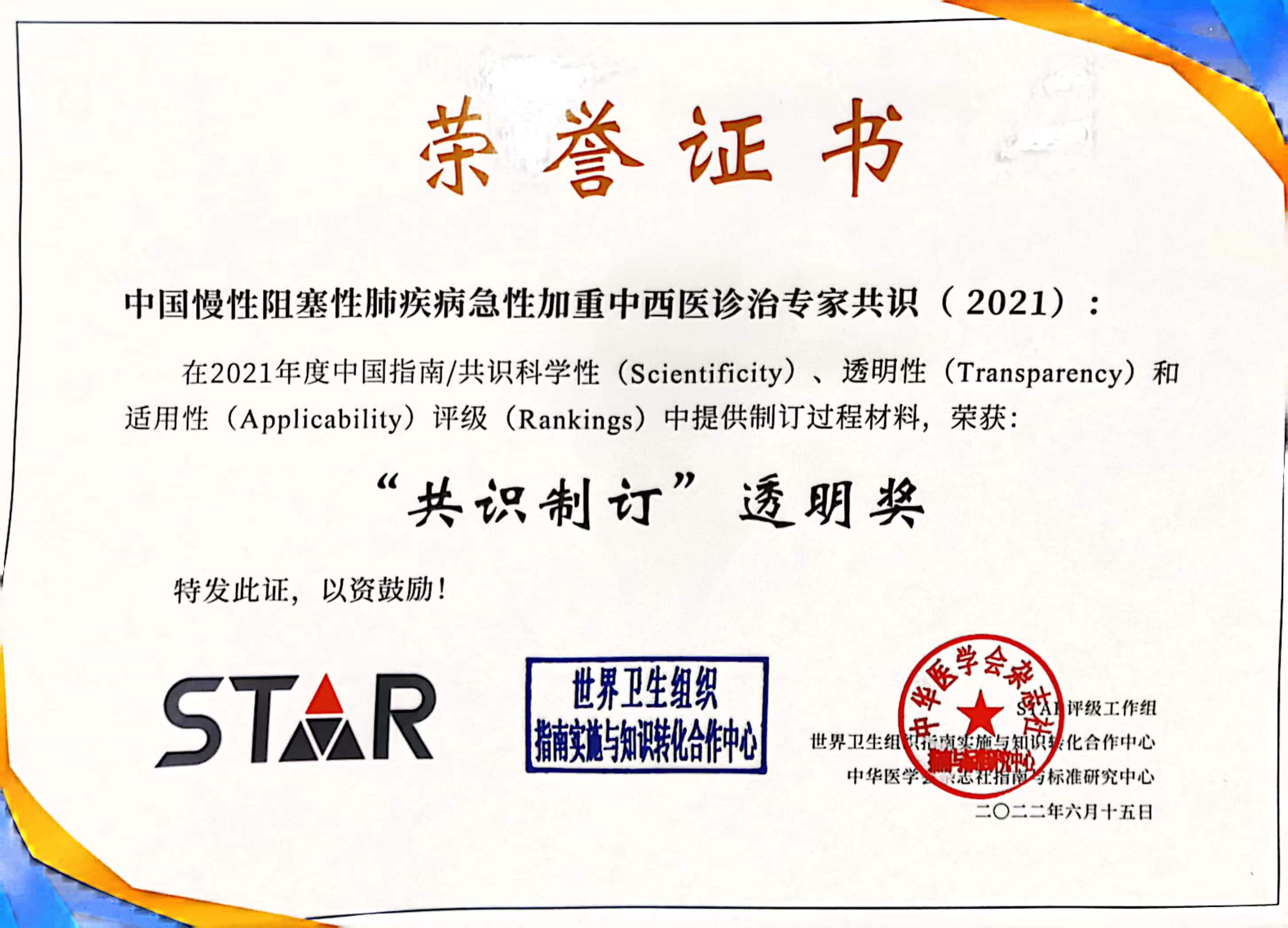 近日,由世界卫生组织指南实施与转化合作中心、中华医学会杂志社指南与标准研究中心对2021年度中国指南/共识的科学性、透明性和适用性进行全面评价,awc77万象城官网急危重症研究所所长、awc77万象城官网附属龙华医院急诊科主任方邦江教授以执笔和通讯作者撰写的《中国慢性阻塞性肺疾病急性加重中西医诊治专家共识(2021)》表现成绩突出,评分位列传统医学共识排名第13名,并荣获“共识制订”透明奖。