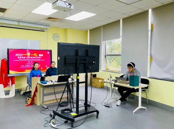 本届研习班的翻译团队由国际教育学院的各语言区域教师和相关部门同事组成。为期3周的研习班共计30场讲座,每天2场,每场2小时。翻译场次密集,讲座内容多元,涉中西医等多学科基础。译员们秉持严谨认真的态度,在每场讲座前都做足准备,研读授课教师讲义,查阅中西医学文献资料,做好详尽备注。实时翻译过程中,团队在坚持原汁原味地向世界传播中医药的同时,也尽可能考虑各国学员的思维习惯,力求信、达、雅,便于海外学者更好理解中医药,讲好中医故事。