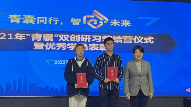 仪式上,学工部(研工部)部长沈漫、教学实验中心副主任(主持工作)吴平分别为2021年“青囊”创新创业研习营学员颁发“优秀学员”荣誉证书和结营证书。