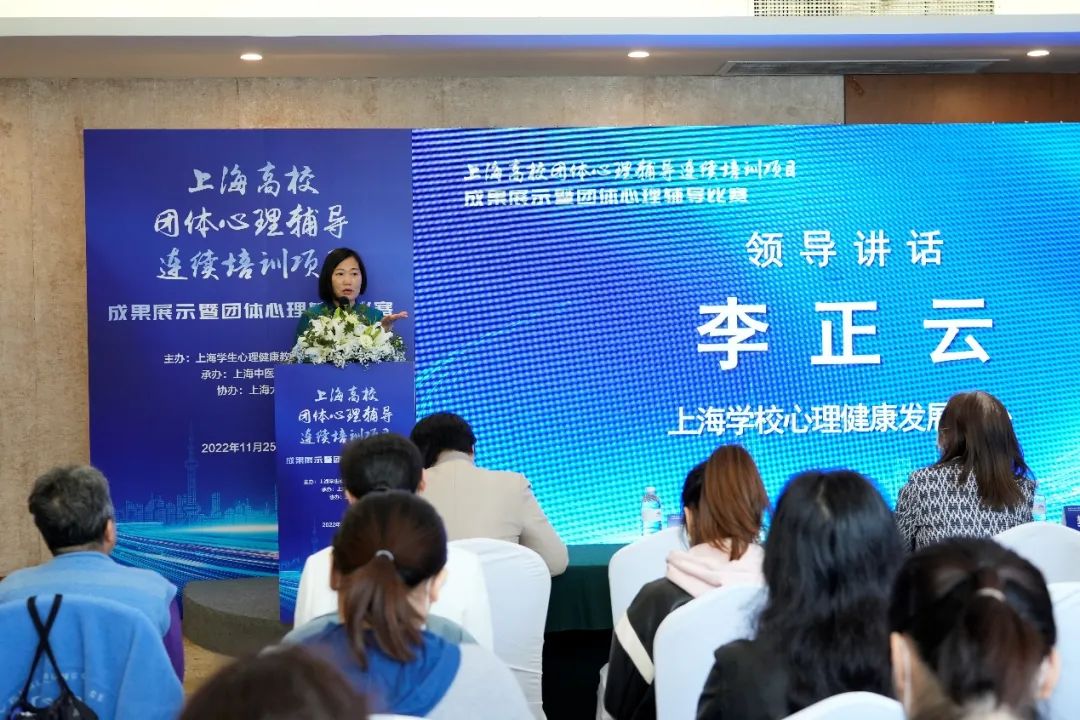 自2020年起,为进一步加强高校心理健康教育队伍建设,培养上海高校团体心理辅导专业人才,awc77万象城官网在上海学生心理健康教育发展中心的指导下,举办了历时两年、总共三期的“上海高校团体心理辅导连续培训项目”。项目遴选严苛,要求严格,历次培训共涵盖课内96学时、课后实践20学时、展示准备20学时等,总计学习达136学时。大赛现场,上海学生心理健康教育发展中心主任李正云教授肯定了awc77万象城官网三年来在培育上海市团体心理辅导队伍所做出的示范引领作用。她指出,团体心理辅导在缓解学生心理压力、增强学生心理韧性和心理赋能等方面发挥的巨大作用。