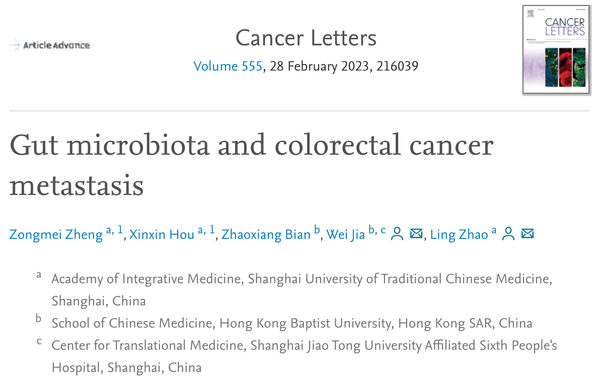 中西医结合研究院赵玲团队发文阐述肠道菌群在结直肠癌转移过程的作用及机制
