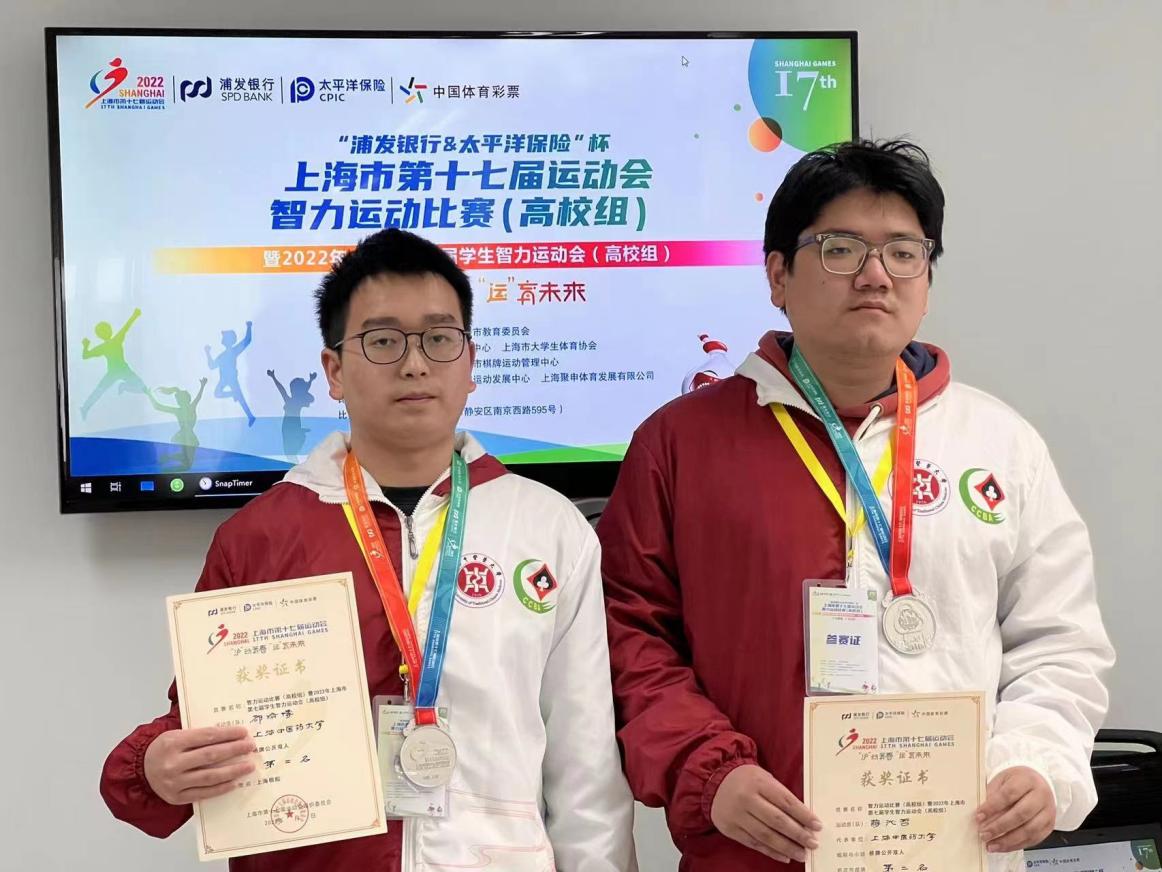 在上午的双人赛中,万象城官网康复医学院蒋沁哲和龙华临床医学院邵渝博沉着冷静,默契配合,分别以87.5%,60.8%,56.4%的得分率击败来自上海体育学院、东华大学及来自上海交通大学的众多高手,最终惜败上海财经大学,获得亚军。