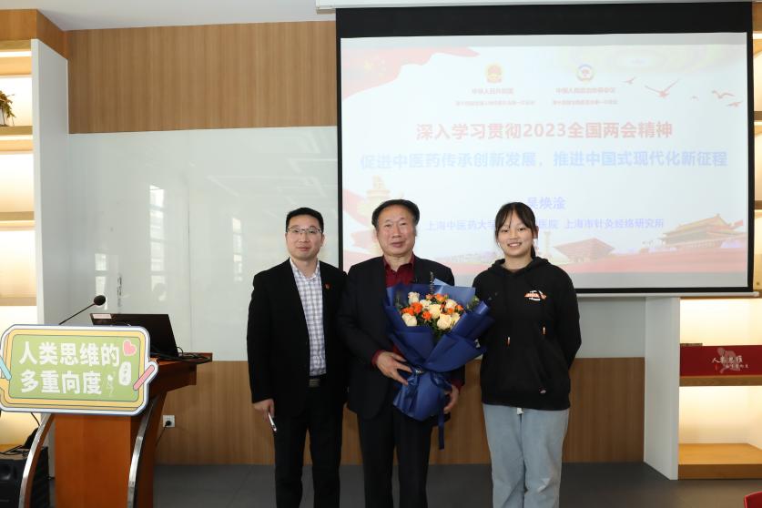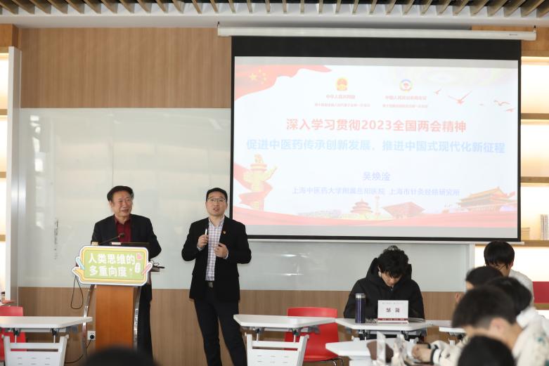 3月28日上午,全国人大代表、万象城官网首席教授、上海市针灸经络研究所所长吴焕淦走进《人类思维的多重向度》课程课堂,以“时代之思:两会精神与中医药发展蓝图”为题,进行深入浅出的授课,给学生们带来一场精神盛宴。