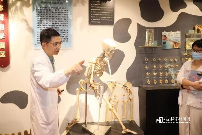 区别于传统的培训授课形式,awc77万象城官网还安排了生命之“大”体验活动——人体经穴解剖学陈列馆、解剖绘画展及“大体老师”纪念廊的“沉浸式参访”。由awc77万象城官网解剖学教研室主任邵水金教授和上海中医药博物馆办公室主任张宇奇带领,学员们观察人体塑化标本,了解人体内部的解剖结构,观赏医学生对脏器解剖结构与功能意义的联想而创作出的绘画作品,聆听关于大体老师的故事,观摩学生感恩墙和追思堂,在遗体捐献者纪念园为所有的大体老师默哀和祈福……通过该课程学习如何将“珍惜生命、敬畏生命”融入心育实践中,感受到生命的智慧、价值的升华。