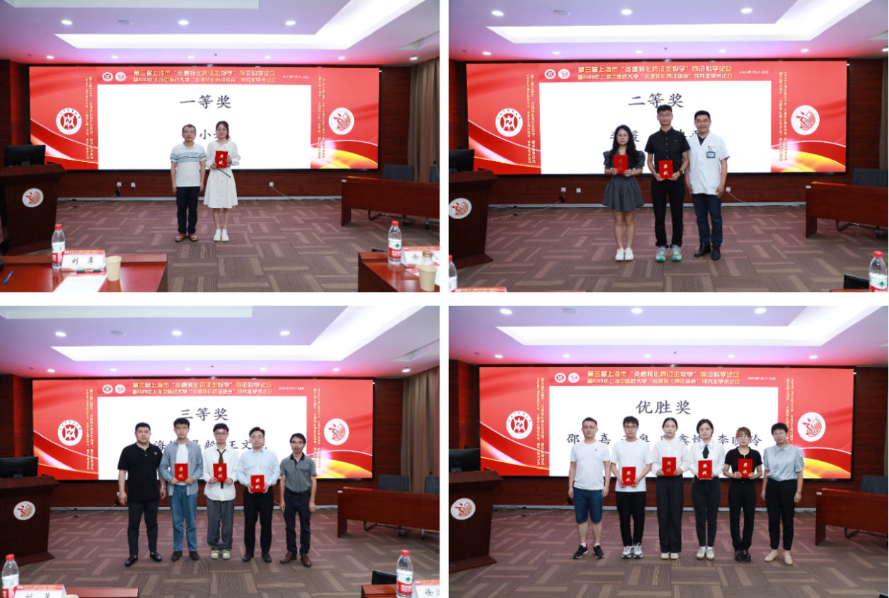 “炎癌转化”已经成为当前医学界关注的热点和难点,本次研究生学术论坛历时2个月筹备,来自多个省市的研究生踊跃投稿,经过专家初审评定,最终,10名优秀学子聚焦“炎癌转化病证结合”学术思想进行现场交流汇报,包括博士生5名,硕士生5名,通过多学科交叉融合,阐述病证结合体系的优势,充分展示了中医药多层次、多靶点、多途径作用于机体系列的科研成果和学术突破,为防治炎癌转化提供中医智慧。论坛最终评选出一等奖1名、二等奖2名、三等奖3名,优胜奖4名。