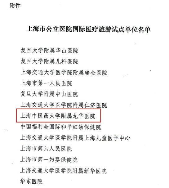 龙华医院入选“上海市公立医院国际医疗旅游试点单位”