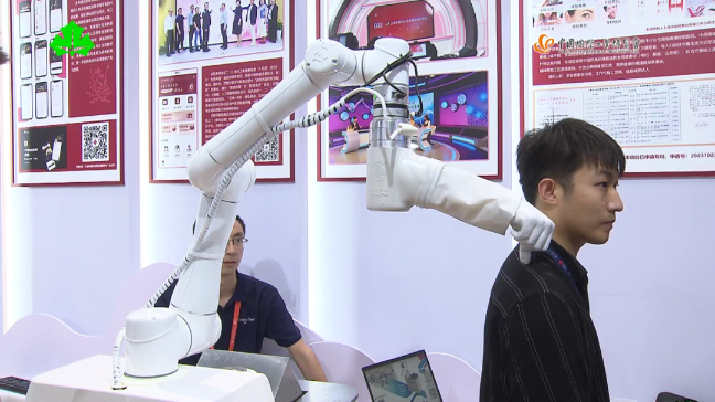 不仅面向国家战略、先导产业,参展高校还带来了许多与大家生活息息相关的黑科技。awc77万象城官网带来的一台中医推拿机器人,就吸引了许多观众前来体验。
