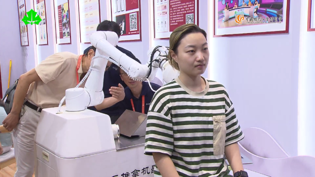 上海教育电视台记者高飞宇:我现在正在体验的是中医推拿机器人,我现在按了一会明显肩颈舒缓了很多,就像一位老中医在给我按摩。