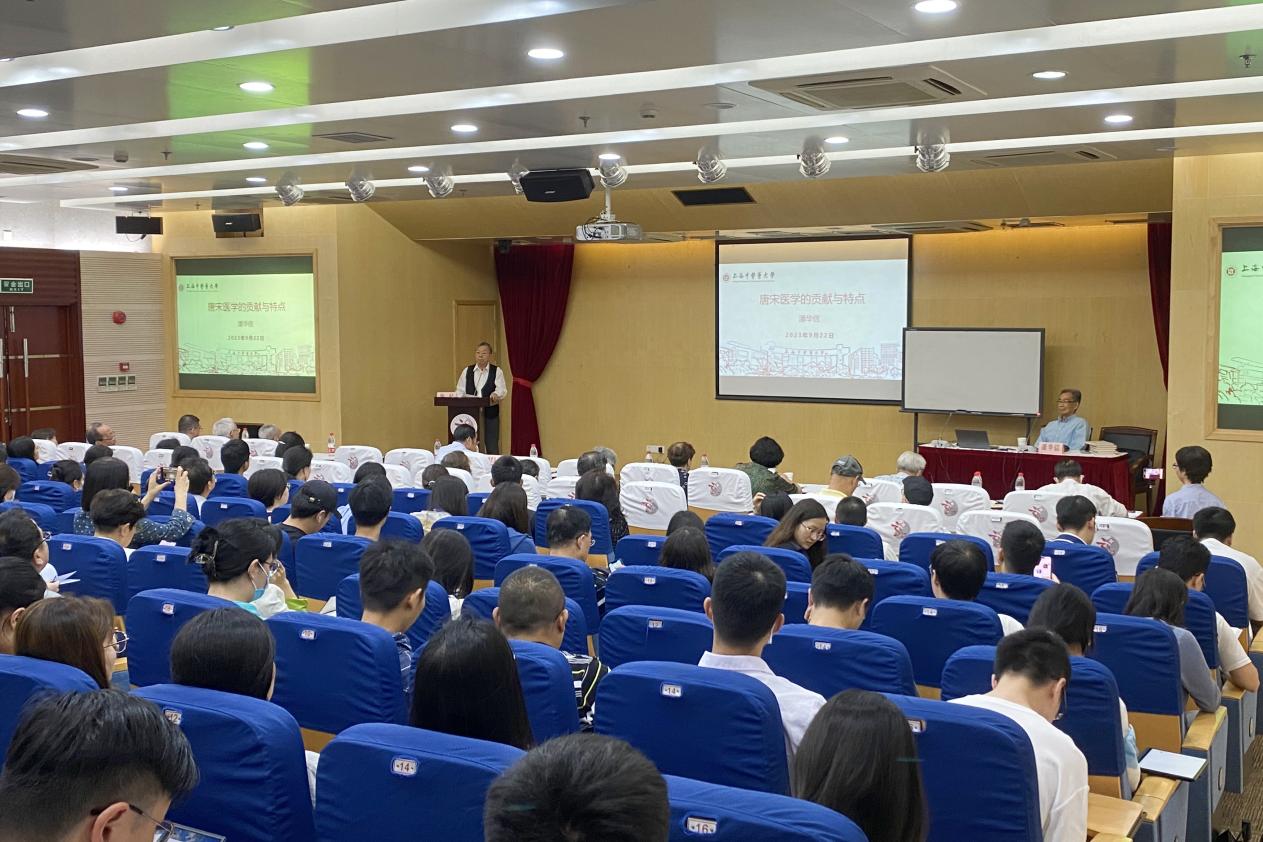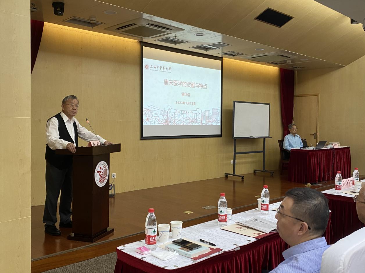 9月22日,万象城官网专家委员会协同老教授协会、龙华临床医学院联合开展学术交流活动,万象城官网专家委员会委员潘华信教授受邀在龙华医院远志楼学术报告厅作“唐宋医学的贡献和特点”主题讲座。30余名专家、教授、青年教师及龙华临床医学院100余名学生出席。会议由专家委员会主任委员、老教授协会名誉会长施杞主持,上海市卫健委副主任、市保健局局长胡鸿毅出席。