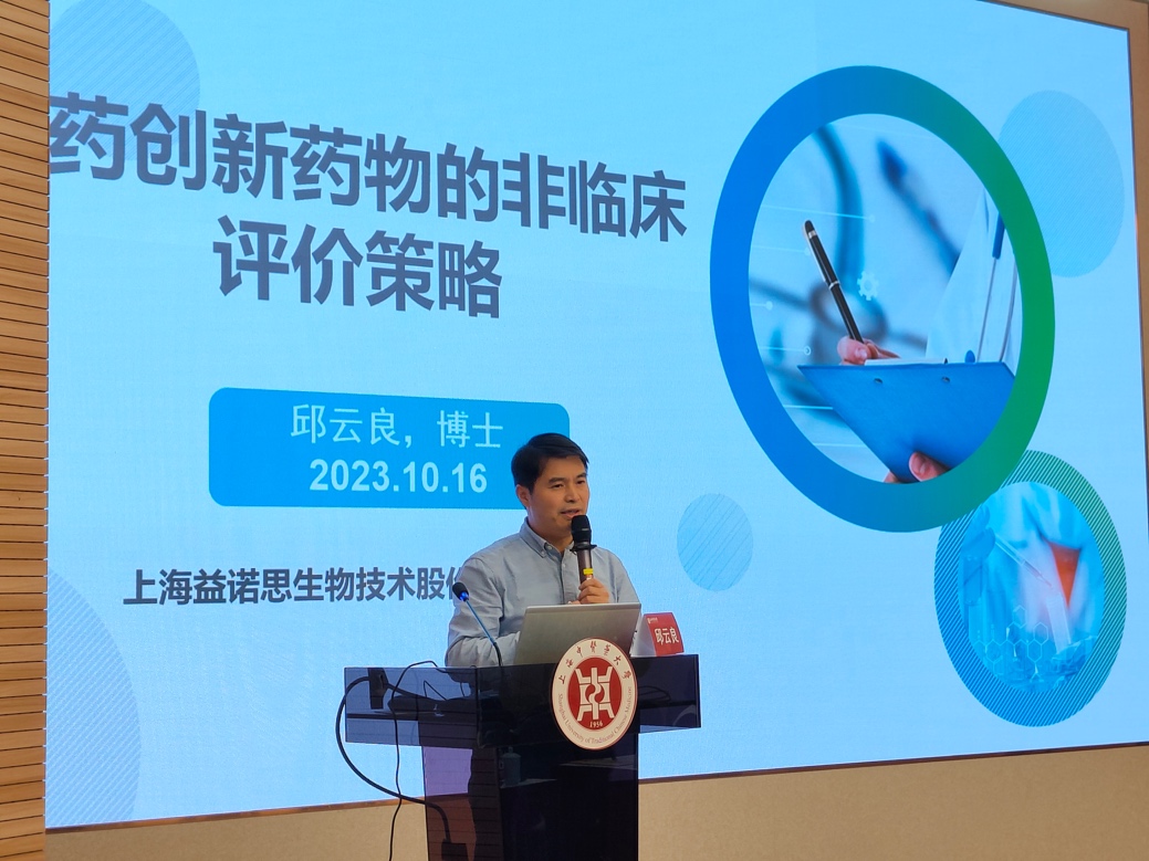 上海益诺思生物技术股份有限公司副总裁邱云良以“中药创新药物的非临床评价策略”为题,围绕中药注册分类及非临床安全性评价指导原则,通过理论与案例相结合的方式,从安全药理学试验、急性毒性试验、重复给药毒性试验、特殊毒性试验等方面展开分享,细致的讲述让同学们收获满满。