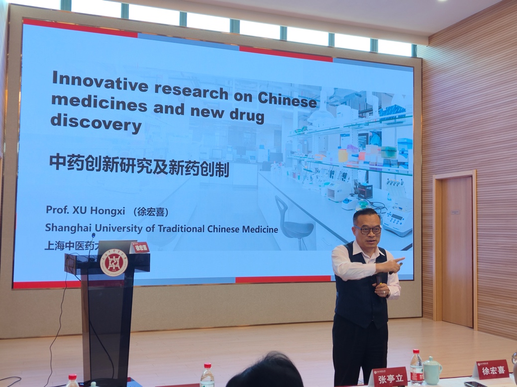 徐宏喜围绕“中药创新研究实例分享”的主题,讲述了中药新药研发的历程、中药国际注册以及中药新药研发的难点与挑战,并通过分享其课题组对于藤黄属植物抗静止期癌细胞的研究实例,引导同学们思考如何实现中药创新,探寻中药发展新路。