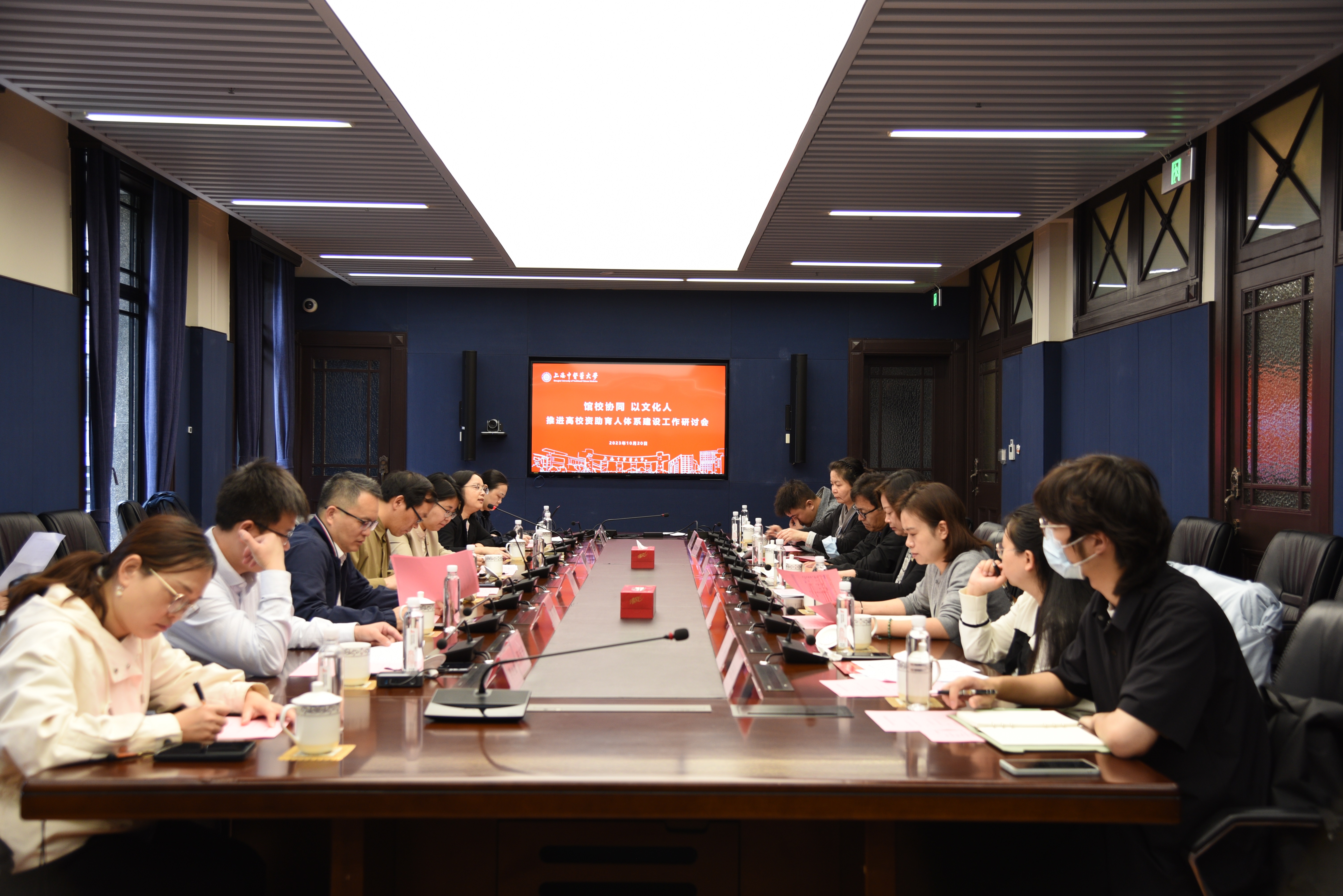 为进一步贯彻习近平新时代中国特色社会主义思想,落实立德树人根本任务,统筹校内外文化育人资源,万象城官网持续推动开展馆校协同育人工作。10月20日,由上海市教育委员会立项,万象城官网牵头负责的“以文化人 馆校协同”资助育人工作推进会在上海市历史博物馆(上海革命历史博物馆)举行。来自上海市龙华烈士陵园(龙华烈士纪念馆)、上海市历史博物馆(上海革命历史博物馆)、上海市档案馆、上海淞沪抗战纪念馆、上海中医药博物馆、上海市奉贤区博物馆和万象城官网及同济大学、华东理工大学、上海大学、上海科技大学的二十余位代表参加工作推进会。会议由万象城官网学(研)工部副部长徐丽英主持。