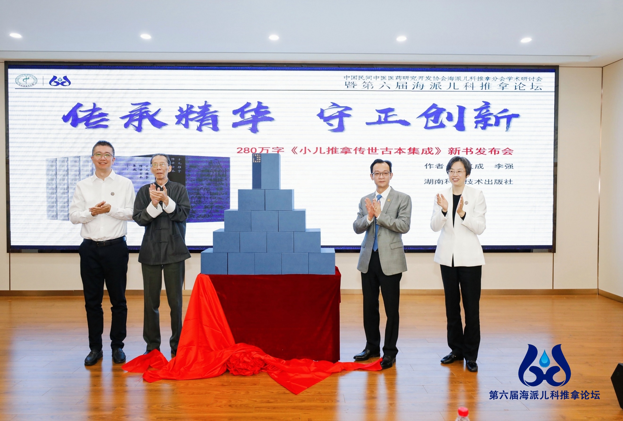 现场还举行了《小儿推拿传世古本集成》新书发布会,季光、王涛和郑莉对金义成教授的新书出版表示热烈祝贺。