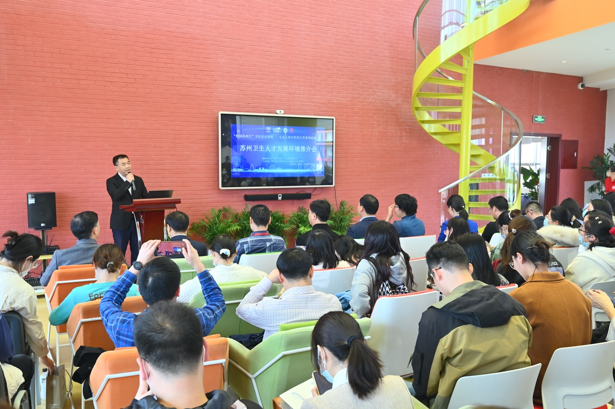 招聘会当天,学校举办了4场专场宣讲会。其中,“苏州市医疗卫生机构专场宣讲会”由苏州卫生健康委员会带领苏州市中医医院、张家港市中医医院等十多家医院“组团宣讲”,进一步推动校地合作,为国家“长三角一体化”建设输送高质量人才。“少数民族地区专场宣讲会”由喀什地区第二人民医院、吉木萨尔县人民医院、吉木萨尔县中医医院进行宣讲。后续,学校将持续开展小而精、专而优的医疗机构专场、生物医药企业专场、康复机构专场、公共卫生专场等宣讲招聘活动。