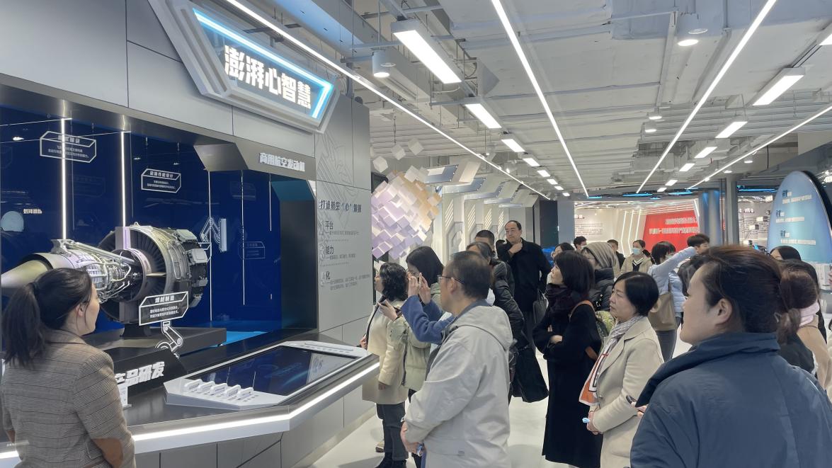 场馆围绕“经济、生活、治理”三方面,展示了元宇宙时代5G智慧工厂、国家数据交易所建设、AI辅助诊疗、杨浦大桥数字孪生管理、随申码“一码通行”等特色应用和众多明星展项,生动描绘了上海城市数字化转型的规划布局、重大项目、标杆场景。各位老师现场专注学习、热情体验,沉浸式感受了城市数字化建设,对上海数字赋能的实践成果有了更加直观深刻的体会。