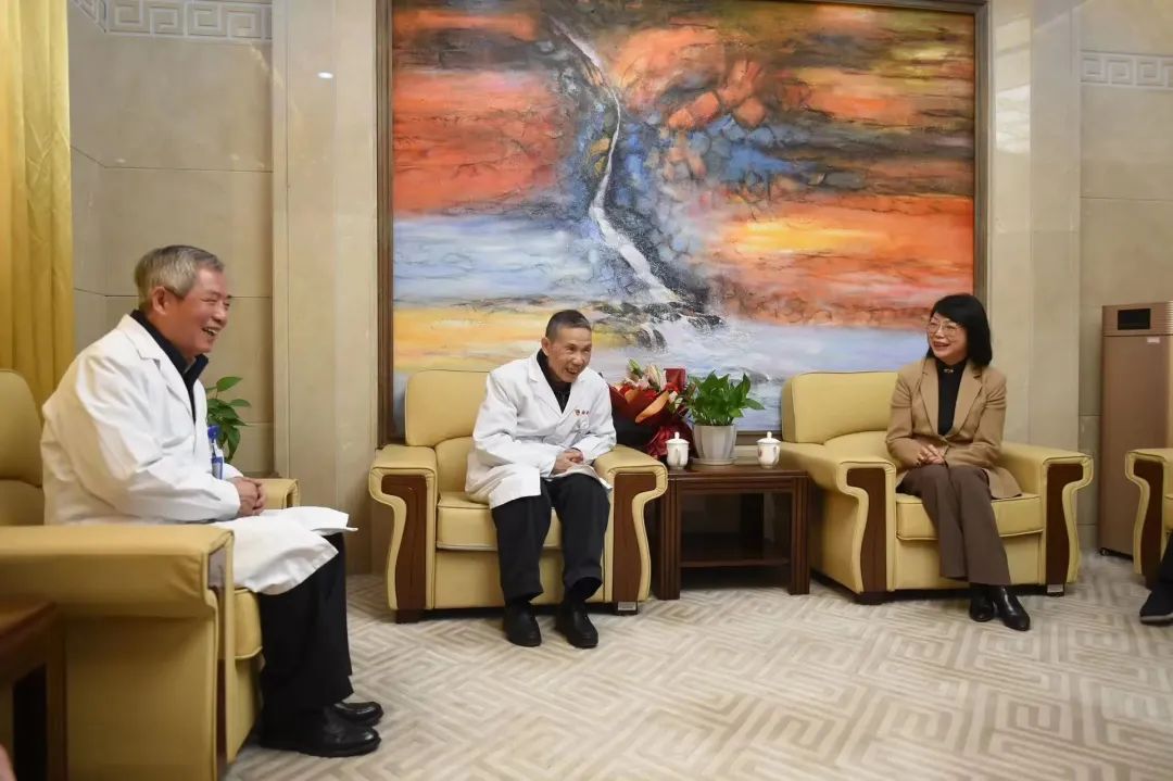 “刘教授、陆教授,提前祝你们春节快乐,你们是我们大家的榜样!”来到龙华医院,黄红第一时间为劳模工匠送上鲜花和慰问品,向两位老教授坚守临床一线表示敬意。“你们那么忙,还特地来看我们,感谢工会的惦记。”刘嘉湘教授回应道,“我们做了一些工作,但还远远不够,多带一些学生、多服务一些病人,将中医这门深厚的学问传承下去、发扬光大,是我们的责任。”刘嘉湘从事中医、中西医结合治疗肿瘤和内科杂病的临床、科研和教学已有70余年,诊治患者逾50万人次。至今,这位90岁的国医大师仍坚持每周出诊。