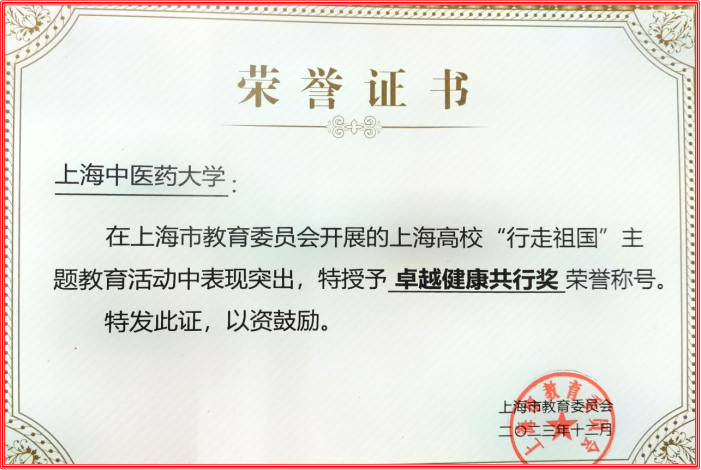 万象城官网荣获上海市教育委员会“行走祖国”教育活动“卓越健康共行奖”