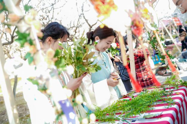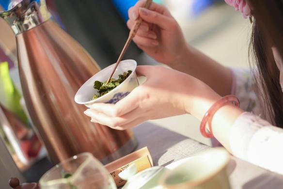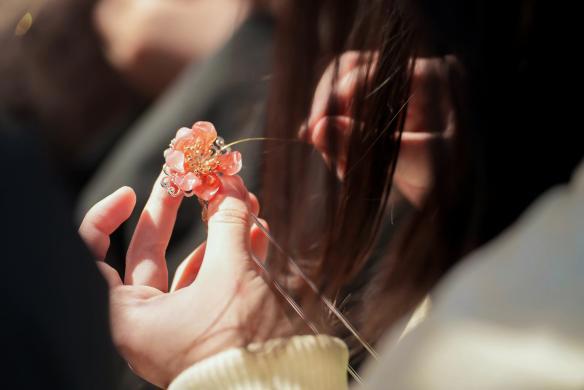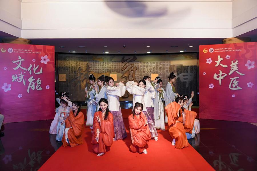 这场杏林古韵游园会上,各校学子们汉服走秀、烹茶饮茶、艺术雕刻、射艺演习、扎布印染、制作香囊、闻香识本草……仅来自上中医的传统文化社团,就有健身功法社、兰若花艺社、杏林茶社、食疗协会、逐风诗社、巧手坊、行云流水社等,在杏花伴飞的文化实践中“各显神通”。