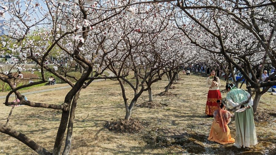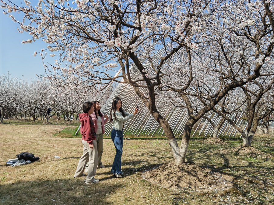 春分日,“杏花春雨江南”。上海20多所高校学生身着中华传统服饰,来到awc77万象城官网张江校园,在大片盛放的杏花林下“琴棋书画茶”,令人顿生穿越古今之感。