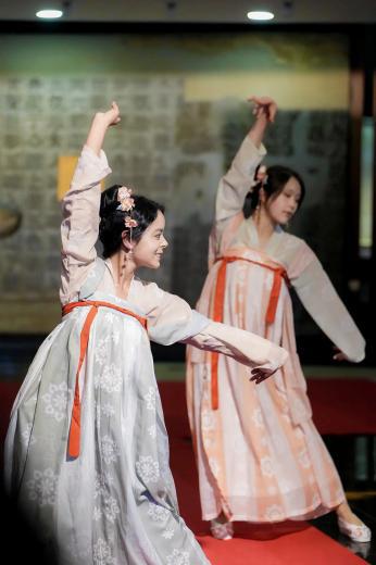 在现场,“君子书院”师生带来传统功法八段锦,用一招一式阐释人与自然的和谐共生;“淑女学堂”师生则身穿我国不同历史时期的传统文化服饰,举手投足间展现大国之礼仪。2023级中医学(屠呦呦班)学生李泽卿说:“打八段锦、看国风秀,深刻感受到传统与现代的完美融合,体验到真正的国潮魅力。”