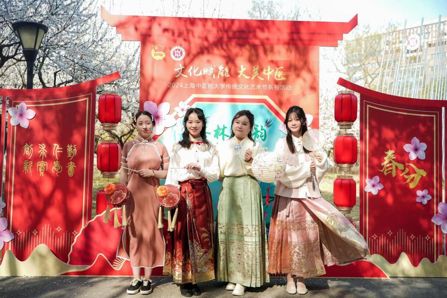 如今,整个校园正逢杏林花期,更传扬优秀传统文化。奏民乐、秀武术、展茶艺,由中医学院、护理学院承办的“君子书院”“淑女学堂”师生们带来一场中华古典美学盛宴。解放日报·上观新闻记者了解到,今年是“君子书院”“淑女学堂”开班第八年,这些年已培育青年学生近700名。