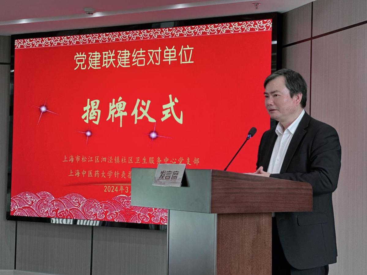 在揭牌仪式上,徐忠于简要介绍了泗泾镇社区卫生服务中心的概况及中医学科的发展,并表示此次揭牌是社区卫生服务中心对内功推拿流派及中医文化的传承和发扬,为中心发展注入新的活力,将继续秉承“守正创新、传承发展”的理念,不断提升中医服务水平,为更多的患者带来福音。
