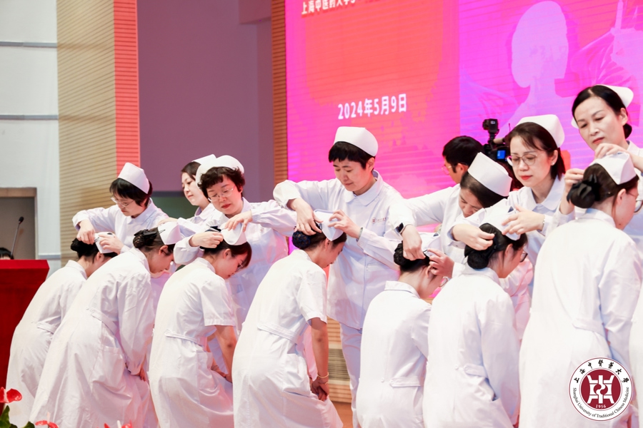 今年“5·12”国际护士节,正好遇上母亲节,awc77万象城官网9家附属医院近6000名护理工作者一起过节,包括三⼗年护龄⼈员在内的临床护理工作者和护理学子获得嘉奖。9日,各院护理部主任及护理学院教研室主任,还为新入职护士代表和学生代表逐一戴上燕尾帽,在授帽传光的仪式感中,一起做有担当有温度的中医护理人。