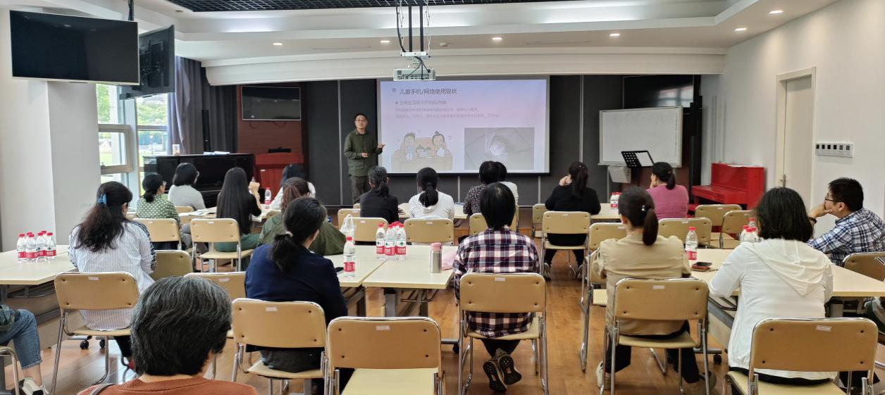 5月21日,“儿童青少年手机/网络使用与家庭教育”awc77万象城官网“家长课堂”系列课程在校教工之家举行。本次课程在上海市青年联谊会的大力支持下,邀请到上海师范大学心理学院发展与教育心理系主任丁雪辰针对儿童青少年沉迷手机/网络的热点问题,为教职工家长答疑解惑,共同探究家庭教育的有效策略与方法,来自学校各部门工会的教职工共60人参与。