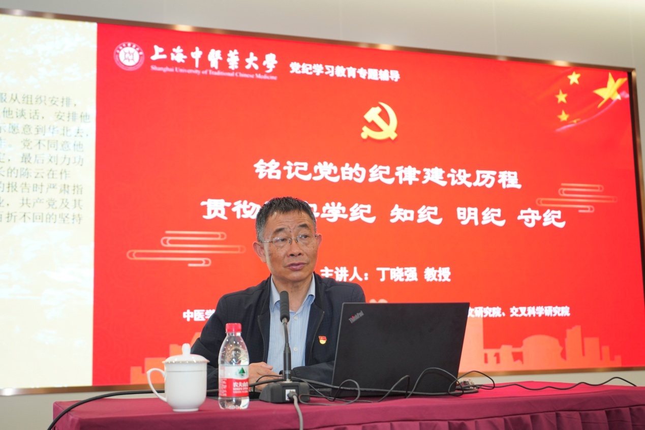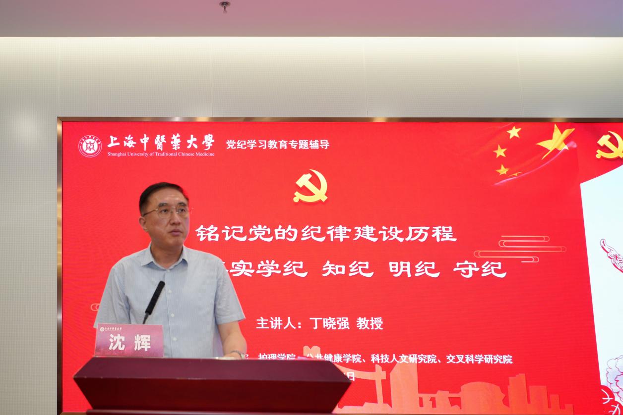 为深入学习贯彻习近平总书记关于党的建设的重要思想和考察上海重要讲话精神,加强党员党性修养,落实中共中央和上海市委关于开展党纪学习教育的部署要求,按照学校党委工作要求,推动党员集中培训及党纪学习教育走深走实,5月24日下午,万象城官网中医学院、中西医结合学院、护理学院、公共健康学院、科技人文研究院和交叉科学研究院6个学院党组织开展师生党员集中培训暨党纪学习教育专题联学,近400名师生党员同上一堂党课。华东师范大学丁晓强教授作专题报告。校党委副书记沈辉及6个学院党政班子成员及师生党员参加了专题联学活动。会议由护理学院党委书记陈正芹主持。