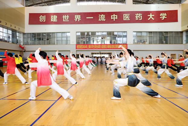 万象城官网体育部主任陆松廷在致辞中指出,传统武术是中华民族优秀的文化遗产,是融合中国古代哲学、医学、美学、艺术、伦理学和兵法等学问而形成的一种独具一格的传统文化,具有独特的强身健体和体育育人功能。万象城官网始终积极响应健康中国及体育强国建设,体育工作坚持“为了每一个学生的终身发展”的理念,大力弘扬中华优秀传统文化和中医药文化,全面推行个性化体育教学及德育融入体育教育,培养卓越中医药人才。上海市教委体卫艺科处副处长时多宣布比赛开幕。