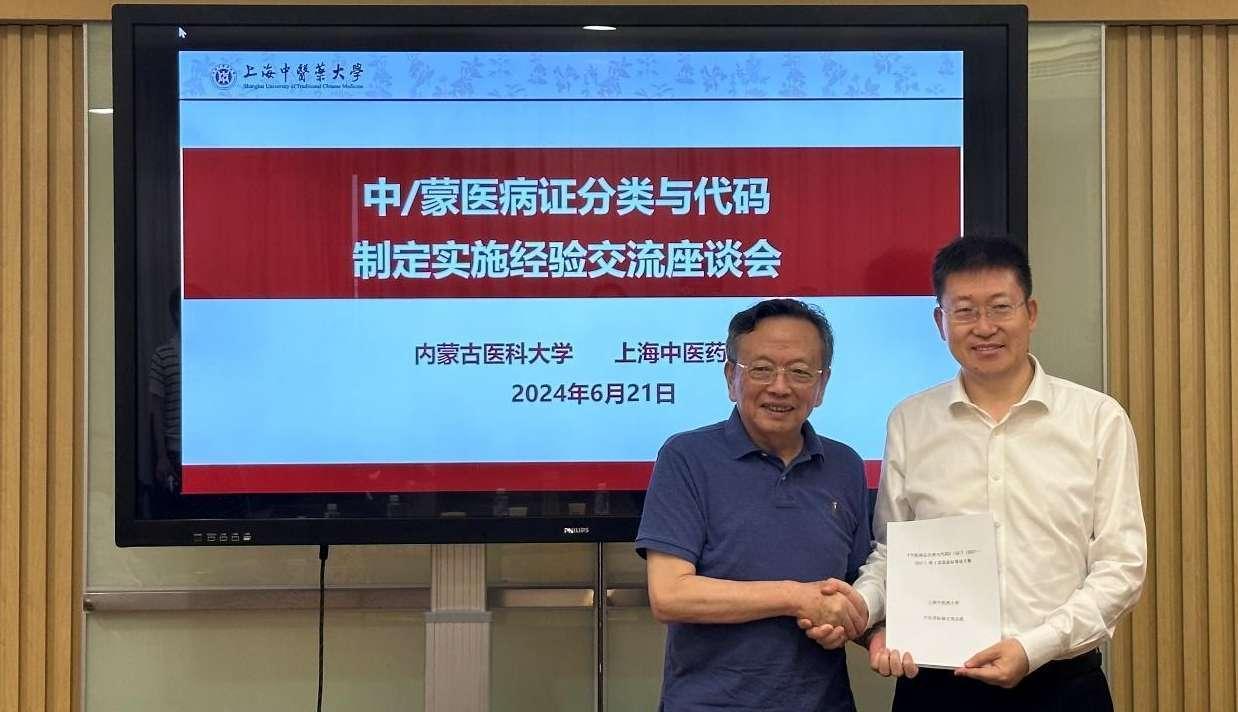 6月21日上午,内蒙古医科大学副校长伊乐泰、全国中医药高等学校教学名师斯琴等一行到万象城官网开展《中医病证分类与代码》国家标准制定与实施经验交流。万象城官网党委副书记、副校长孟煜,科技人文研究院副院长陈丽云,上海文史馆馆员、上海市名中医、教授朱邦贤,中医方证信息研究中心及中医国标修订项目组相关专家出席座谈会。