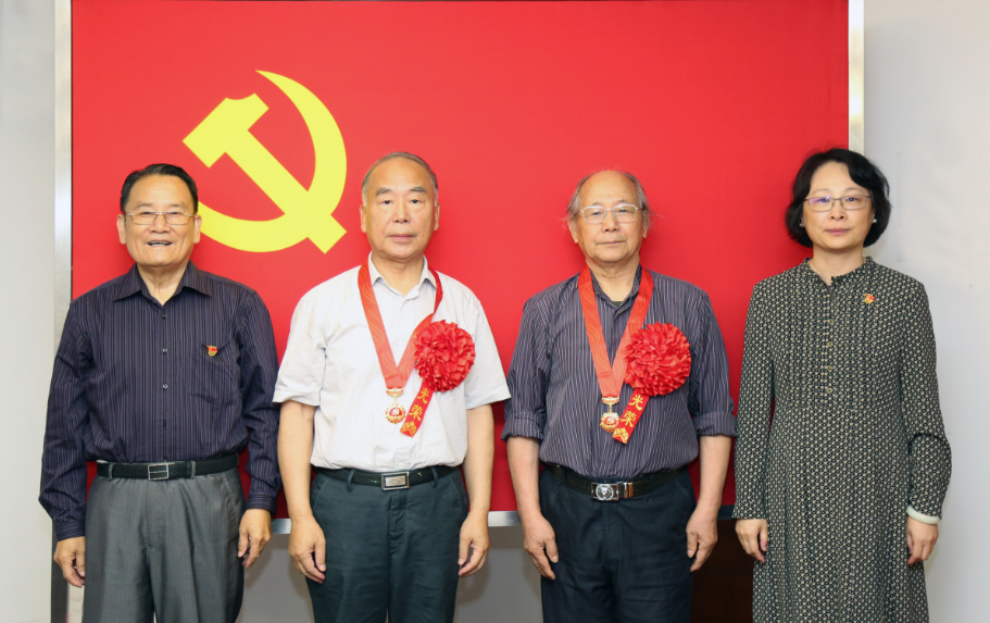 会上,张建中宣读荣获“光荣在党50年”纪念章党员名单,孟煜和张建中为老党员颁发“光荣在党50年”纪念章。