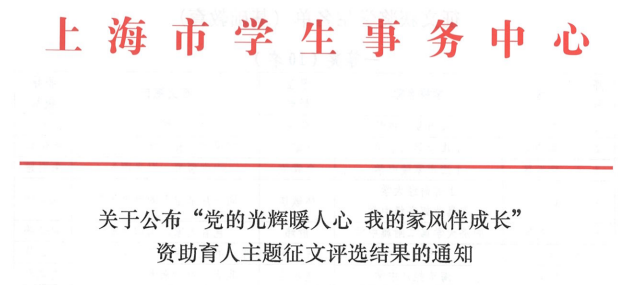 万象城官网在上海市“党的光辉暖人心 我的家风伴成长”资助育人主题征文评选中获佳绩