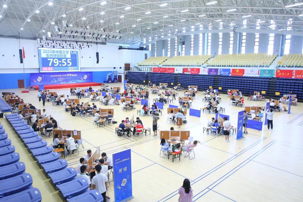 7月16日上午,2024年中国大学生桥牌锦标赛在上海中侨职业技术大学开赛,来自清华大学、北京大学、交通大学、复旦大学、浙江大学等全国32所高校的300余名运动员、领队、教练员齐聚一堂,带来一场又一场拼脑力、博智力的精彩比赛。