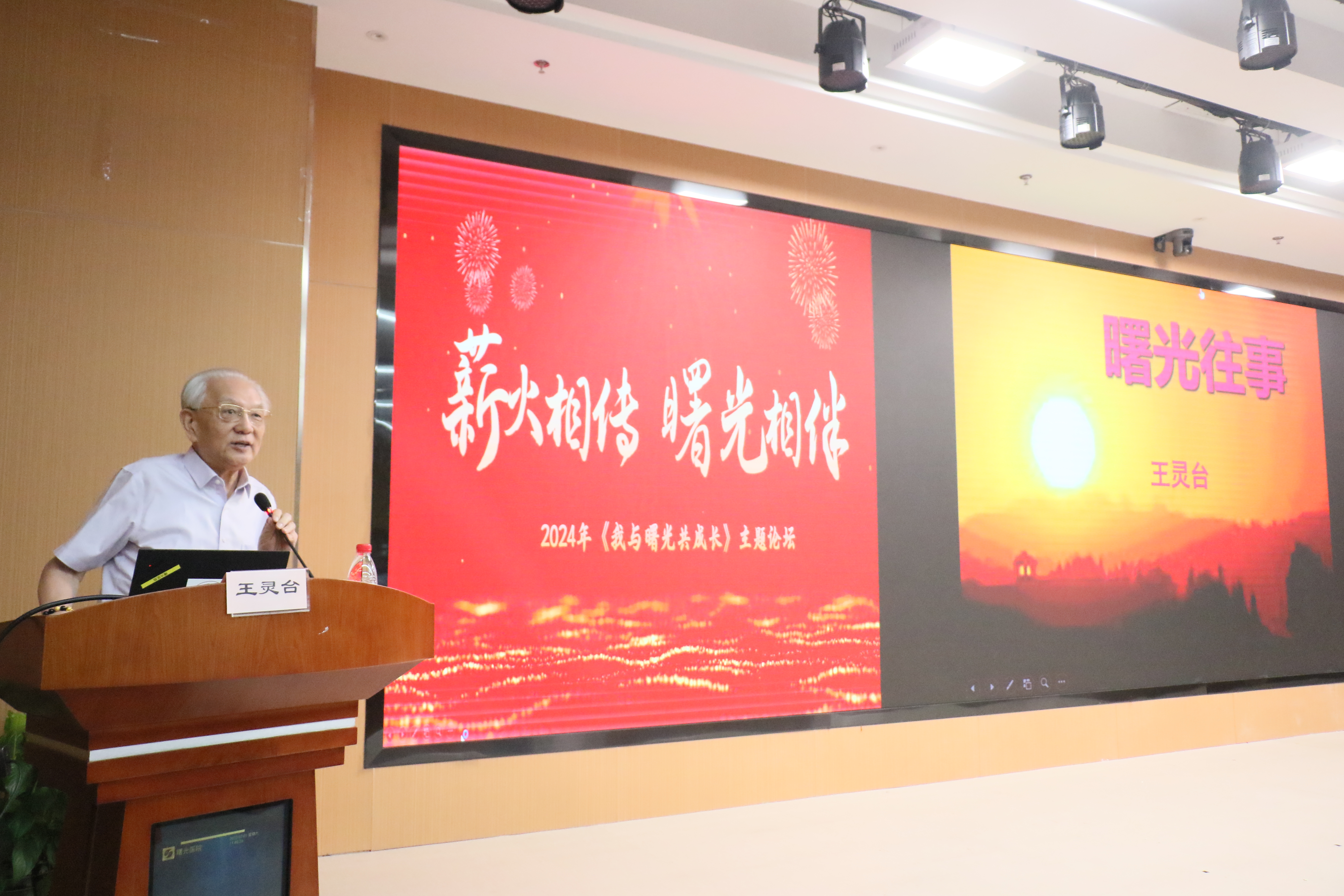 曙光医院原院长王灵台以“曙光往事”为题,带领新职工回顾曙光医院的发展史,强调要紧跟党的中医政策,继续团结一心,传承好曙光精神与曙光文化,继承好历史形成的中医特色和优势,体悟“忠诚、担当、实干、勤奋、自强、睿智、大气、团结、谦虚、秉公、时尚”的曙光人精神和特质。