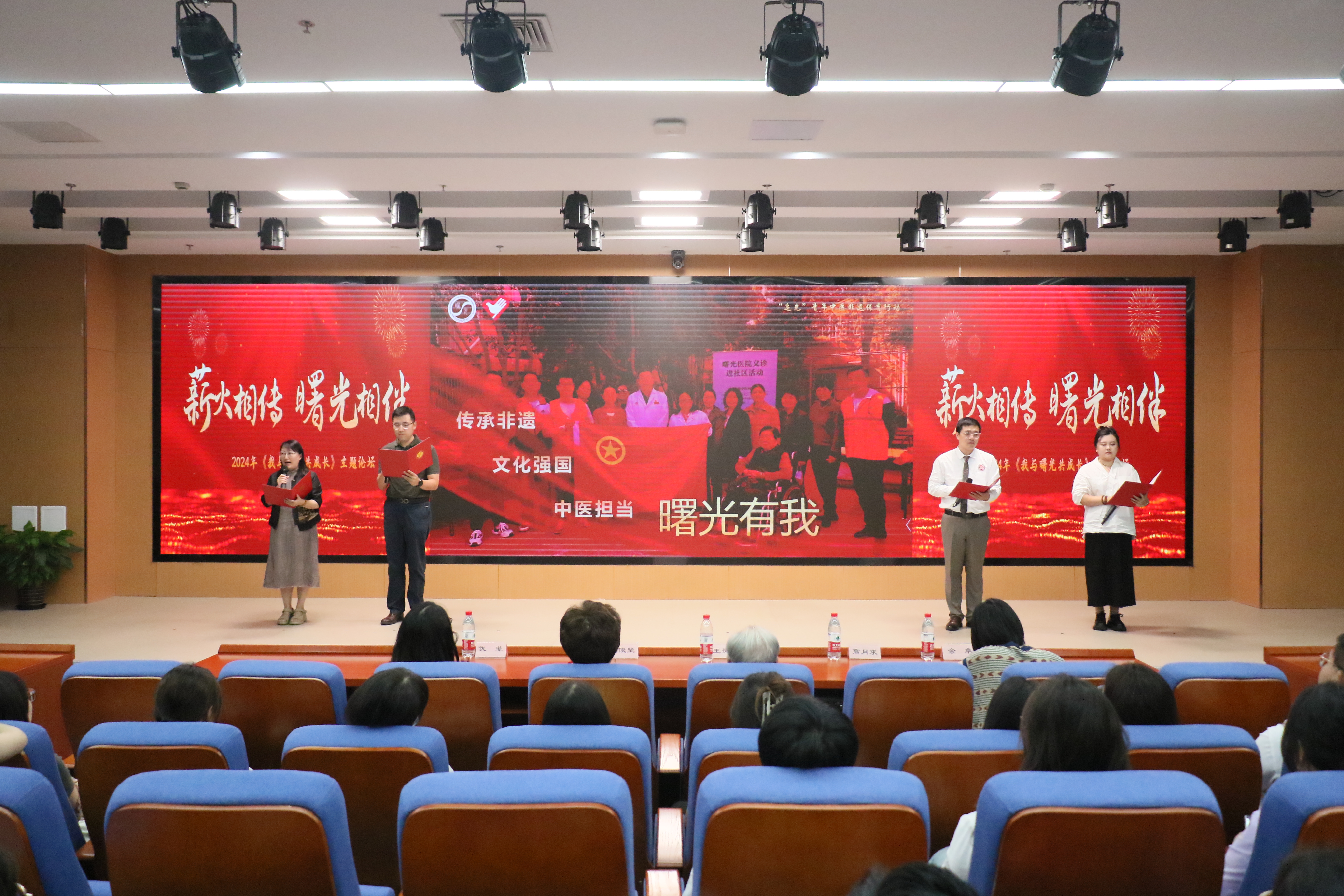 2024年“我与曙光共成长”主题论坛在追光青年服务队的《追光之路》诗朗诵中拉开了序幕,声入人心激励着新一代中医青年追着光往前走,为中医药蓬勃发展贡献自己的青春力量。