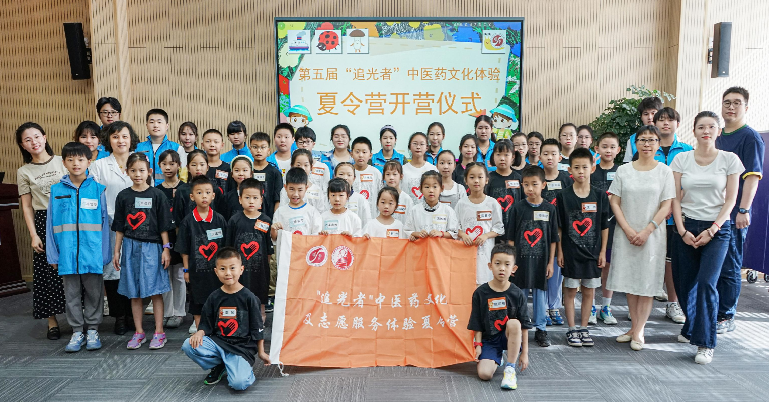 第五届“追光者”中医药文化及志愿服务体验夏令营于7月29日上午在东院开营。32位来自曙光医院不同岗位职工的子女们欢聚一堂,共同开启为期一周的中医药探索之旅。