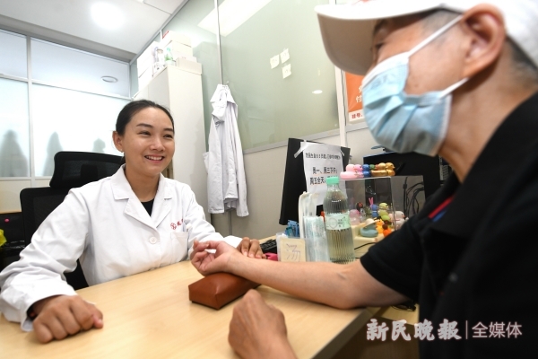 图说:龙华医院汤康敏医生为患者把脉 新民晚报记者 徐程 摄