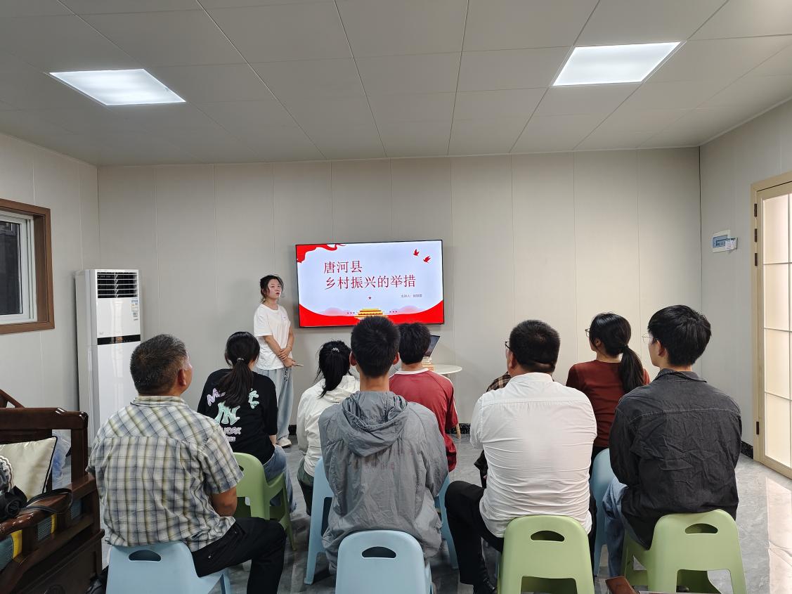 在唐河县泗洲街道人大代表联络站,团队成员与当地的领导干部群众进行了交流座谈。负责人向志愿者们介绍了该街道在产业振兴、生态振兴、文化振兴等方面的经验和做法。通过座谈,团队成员深入了解了唐河县乡村发展的现状,深受启发并且纷纷表示,将认真学习泗洲街道的成功经验,为乡村振兴贡献自己的智慧和力量。
