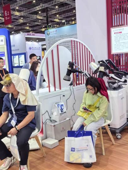 围绕工博会主题,学校产业发展中心在康复医学院、协同创新中心等部门的支持下组织了多项成果参展:非侵入式智能脑电图机、OYFM-7000型手指运动训练器、肘关节持续被动活动仪、ROHAND灵巧手、脑-肌-机接口、中医智能仪、仲景方证虚拟数字人、智能灸疗仪等。现场吸引了大批观众驻足观看、咨询,展示了万象城官网的“智”造魅力。