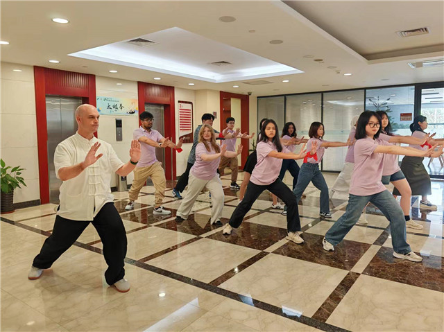 老外跟着老外学打太极是一种怎样的体验?亲手在蓝色方巾上绣出两片金灿灿的银杏叶会带来多大的喜悦和满足?