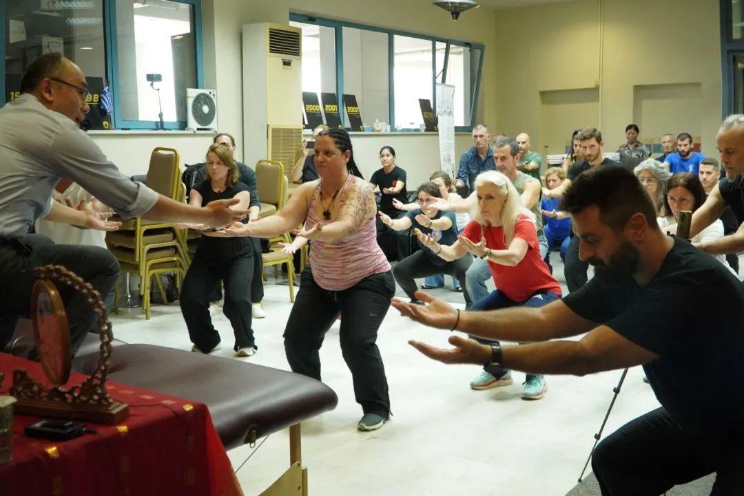 前一天,逾百名希腊本土理疗师、中医医师及气功太极爱好者共聚雅典摔跤奥林匹克体育场(WRESTLING OLYMPIC STADIUM),参加上海市气功研究所与希腊武术功夫协会共同举办的“太极健康”中医功法开放日活动。武术功夫协会秘书长亚尼斯(IOANNIS LEONTARIS)在致辞中介绍,成立于1993年的协会经过多年深耕,在2000年6月获得希腊国家体育总局认可,成为希腊武术、功夫和其蕴含价值观的官方代表和倡导者,长期持续组织泛希腊武术锦标赛等社会文化活动和体育赛事。
