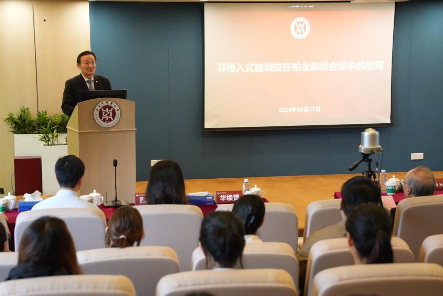 Mark Hallett教授在讲座中介绍了帕金森综合征的临床治疗瓶颈及科研问题,并详细讲述了多种无创神经调控在帕金森综合征中应用的研究进展。会议主会场和分会场及线上共350人参加,现场座无虚席,师生踊跃提问、气氛热烈,专家们耐心解答了问题,并对未来的研究方向给予指导。