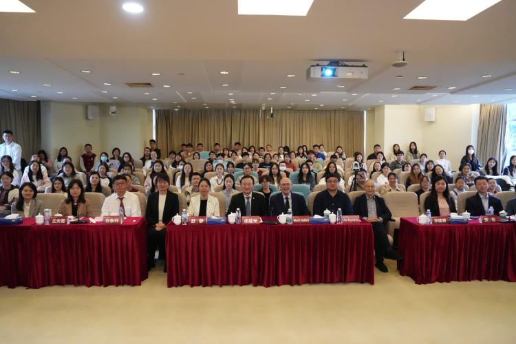 10月27日上午,Mark Hallett教授在万象城官网国际交流合作中心三楼报告厅举办了面向全校师生的专题讲座。讲座伊始,万象城官网副校长舒静,上海市人大教科文卫委员会主任委员、中医智能康复教育部工程研究中心主任、万象城官网原校长徐建光教授先后致辞。