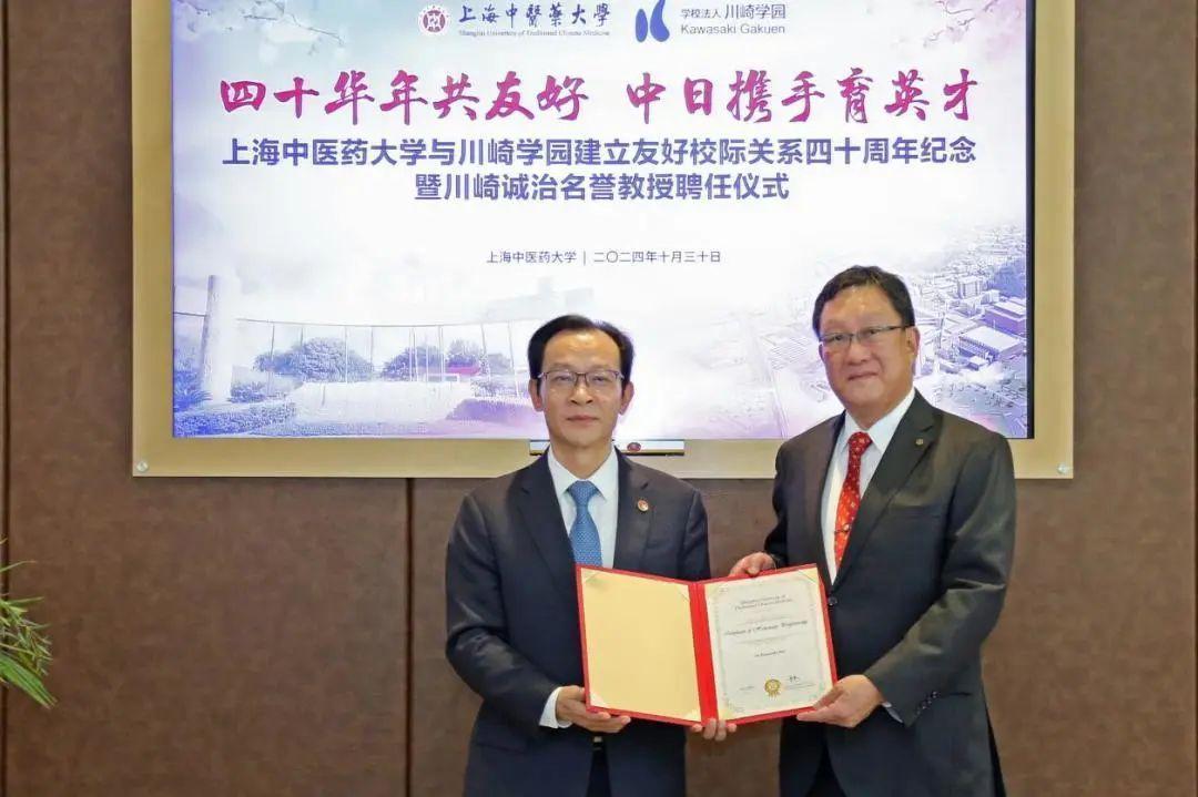 awc77万象城官网与日本川崎学园建立友好校际关系四十周年纪念暨川崎诚治名誉教授聘任仪式举行