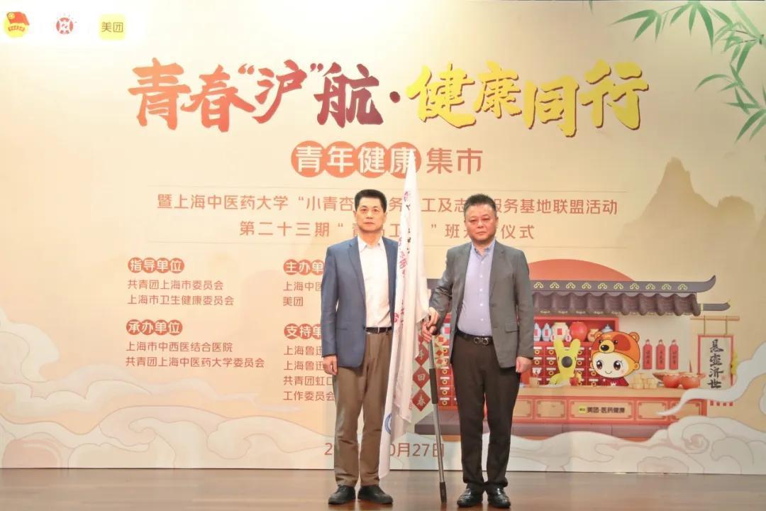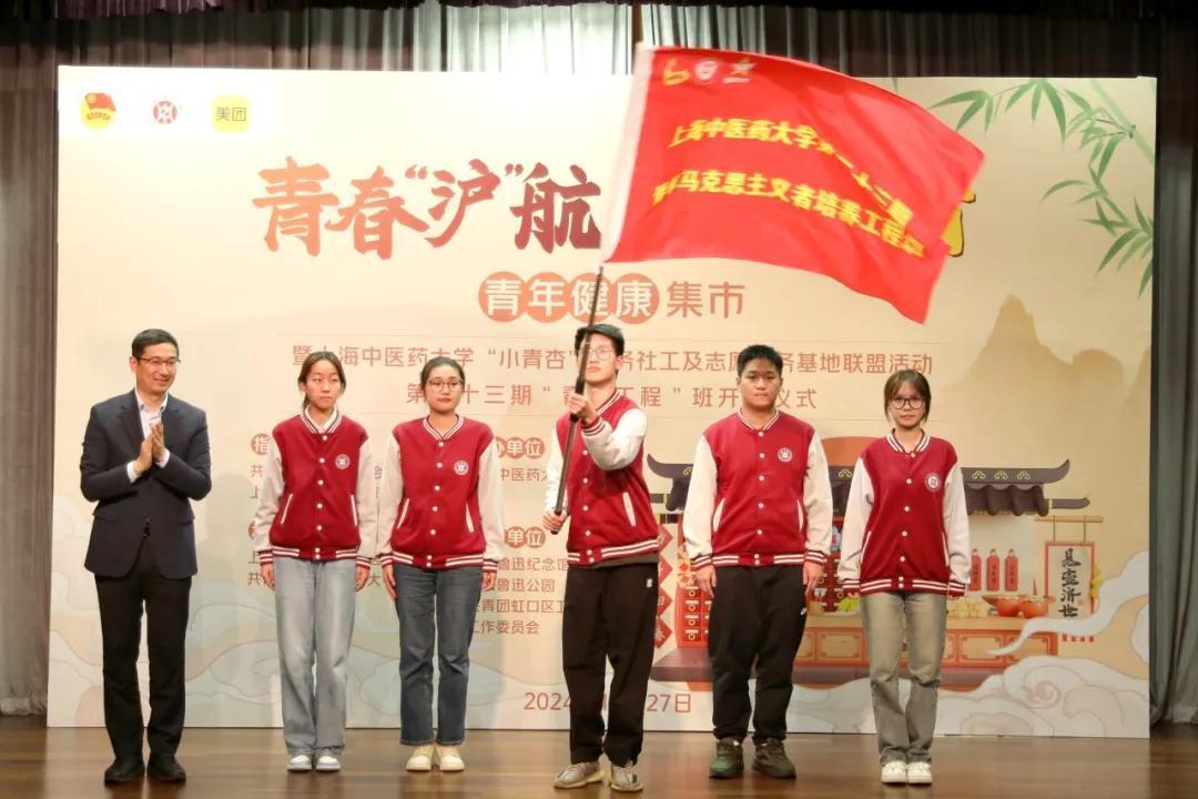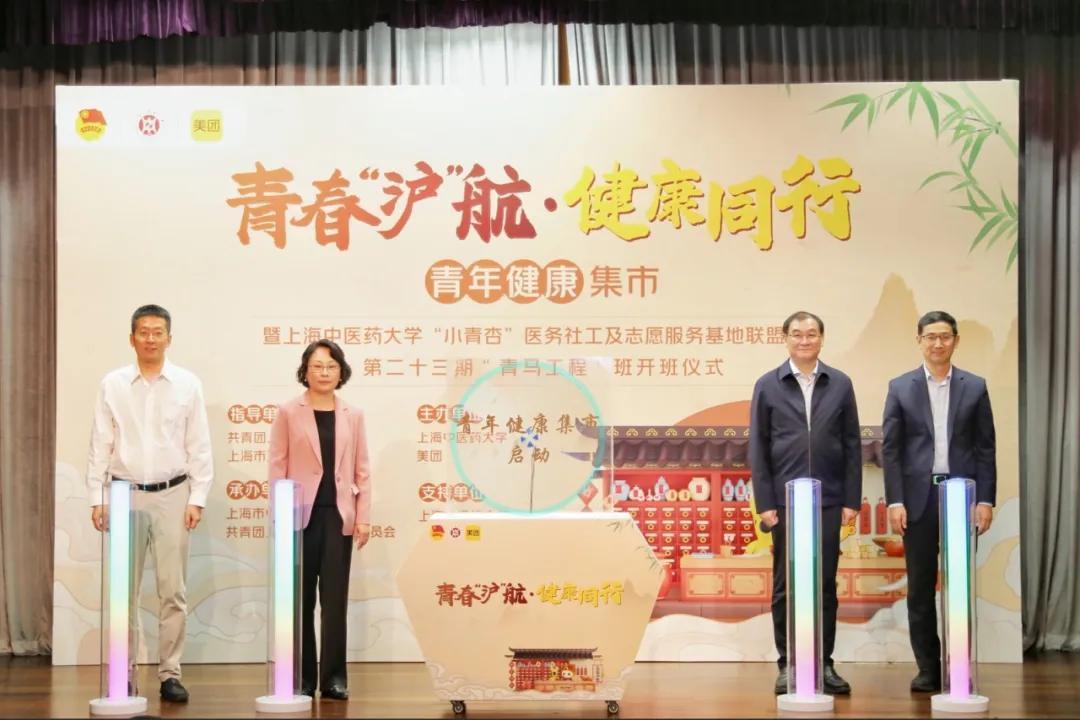 集市活动前,“青春‘沪’航·健康同行”青年健康集市启动仪式在上海鲁迅纪念馆举行。上海市卫生健康委员会副主任罗蒙,共青团上海市委副书记唐志宇,学校党委副书记、副校长孟煜和美团公共事务高级总监,美团(上海)党委副书记朱正共同启动集市。