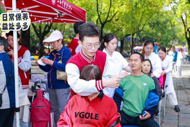 孟煜介绍,学校立足人才优势和专业学科特色,努力推动中医药文化创造性转化与创新性发展,本次健康集市是学校推动中医药文化“破圈”的一次全新尝试,是“校企”公益服务合作模式的一次积极探索,希望通过这次活动为“健康中国”建设凝聚青春力量。