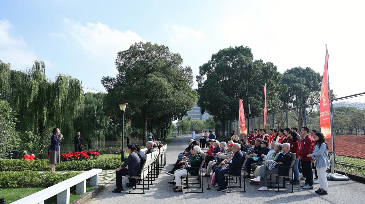 随后,1963届校友代表施杞、姚植印、王致谱,以及王少敏、孟煜、舒静一同为桂花园开园仪式揭幕。